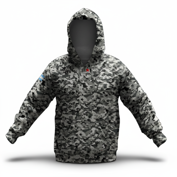 Buzo confeccionado en tela poliester frizado, estampado por sublimación digital de alta resolución.